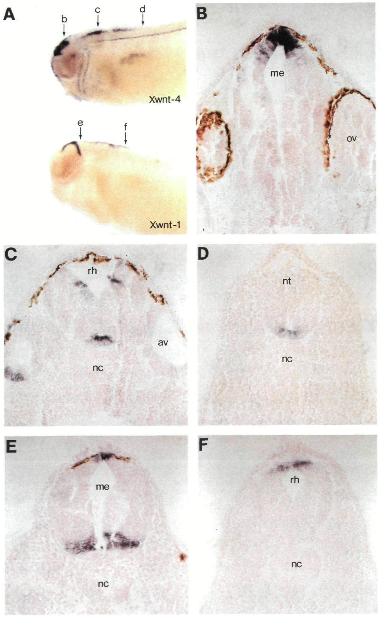 D. (F) Antisense Xwnt-4 probe hybridized to a tadpole