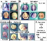 Figure 3. Pax3 Overexpression Increases Neural Crest Formation In Vivo, whereas Depletion of Pax3 Activity In Vivo Prevents Neural Crest Formation(A) Injections of 50â100 pg of Pax3 increase Slug (a), Snail (b), and FoxD3 (c) at the neural border as does ZicR1 (500 pg, d). In contrast, coinjections of Pax3 + ZicR1 expand NC at the neural border (not shown) and induce ectopic ventral Slug expression when targeted ventrally (e, ventral views). aâd, dorsal views.(B) Pax3-MO blocks Slug (a) and FoxD3 induction (b). In contrast, Pax3 mRNA is stabilized by the binding of the MO, resulting in an increased ISH signal (c), and Msx1 is unaffected (d).(C) Tadpole phenotype after Pax3 knockdown. Twist expression is strongly decreased (a and b, frontal views), embryos show fin and craniofacial defects (c), and pigment cells do not differentiate after bilateral injections (d amd e, albinos eggs fertilized with sperm from pigmented male).(D) Pax3-MO injection phenotype is dose dependent. More than 80% of the embryos show decreased NC markers expression at doses above 30 ng (red square). An MO with two nucleotide mismatch (Pax3-MO-mis, open squares) downregulates Slug expression in only 30% of the embryos, and the control-MO has no effect (circles). Mouse Pax3 mRNA rescues the knockdown phenotype (rescue, black circles): ISH for Slug (a) and FoxD3 (b). |