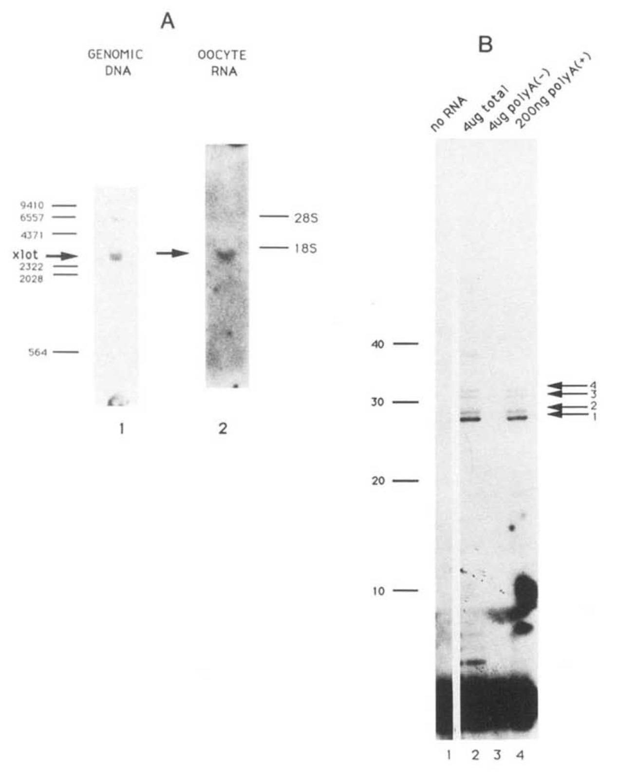 Fig. 1. Blot hybridization of Xenopus genomic DNA and oocyte