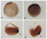 lO'/z embryo hybridized with XFKHl cRNA. Most of the signal is in the organizer region (arrow). [D] Lateral view of stage 11 Vi embryo.