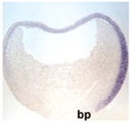 (iii), and 35 (iv). Transverse sections through stained stage 12 (top right) and stage 20 (bottom left) embryos are also represented. bp, blastopore;
