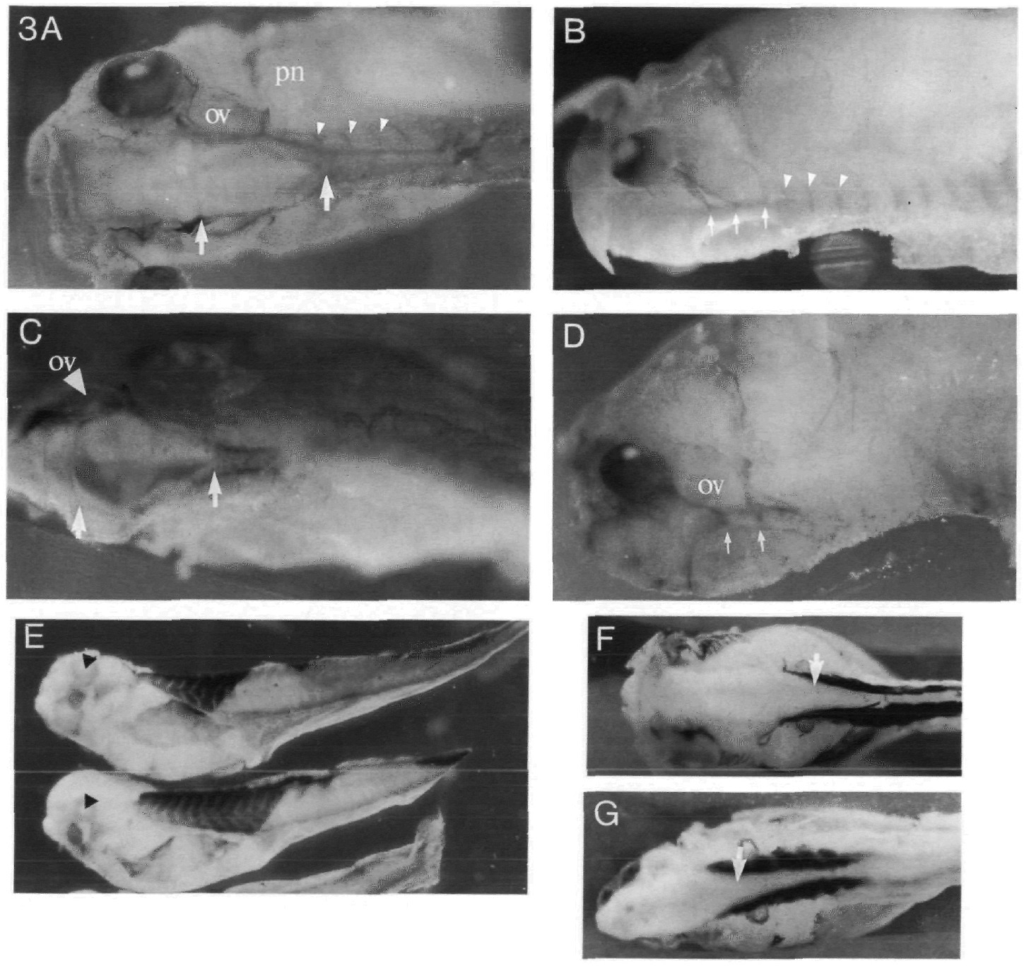 points of the Vth, Vllth/VIIIth and IXth cranial nerves from top to bottom respectively in control embryos. Only two