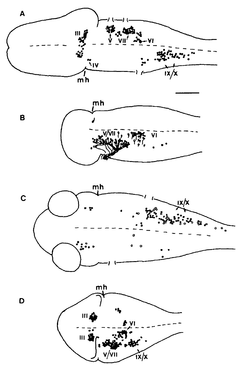 neurons of the Vth/VIIth complex and a few VI neurons.