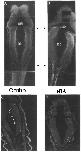 ventral to top in all panels. Control embryos show two strong stripes of Krox-20 expression which correspond to the future
