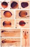 12; dorsal view). The presumptive neural plate is intensively stained (left side: cranial, right side: caudal). (DJ Early neurula (stage 13; lateral view). The