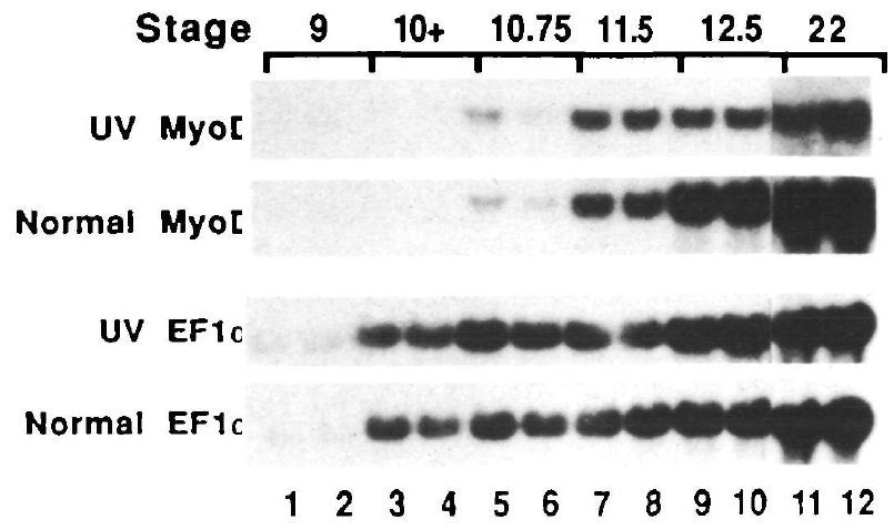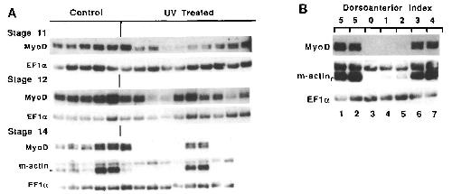 were loaded. Filters were sequentially hybridized with complementary DNA probes for the XMyoD, EFla, and muscle specific