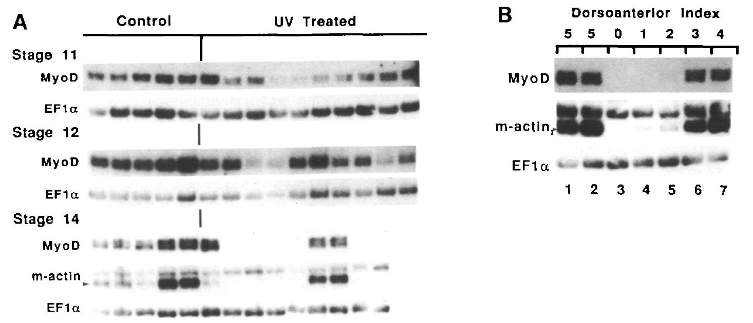(B) Expression of XMyoD in ventralized neurula stage embryos. For examination of graded embryos at stage 20, two