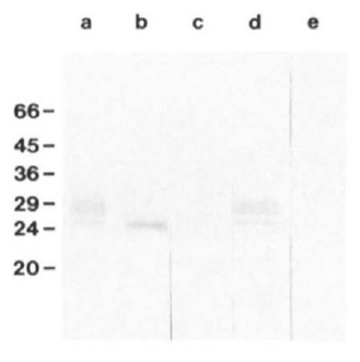 peptide XGP·l (lane c) or peptide XGP-2 (lane d), whereas lane e