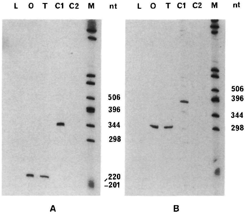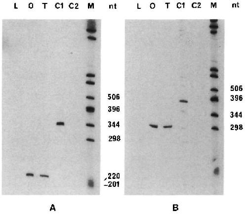 probes (lanes O and T) are shorter. The ovarytissue used