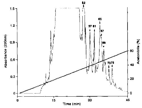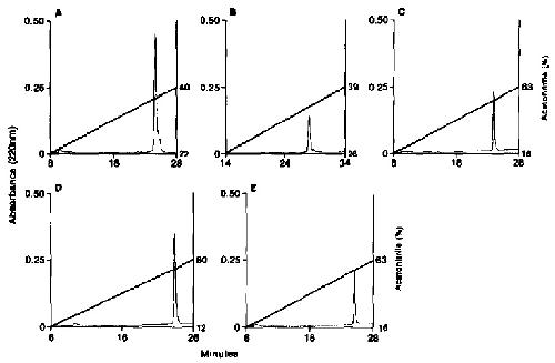FIG. 5. Reversed-phase HPLC chromatograms of peptides