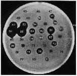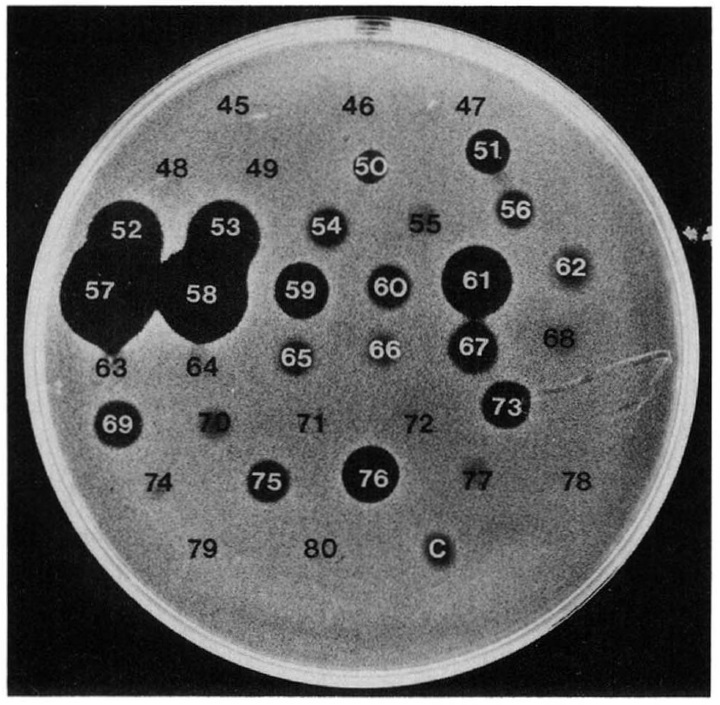 poured lawn of E. coli D31. Clear areas indicate lysis of bacteria. 45-
