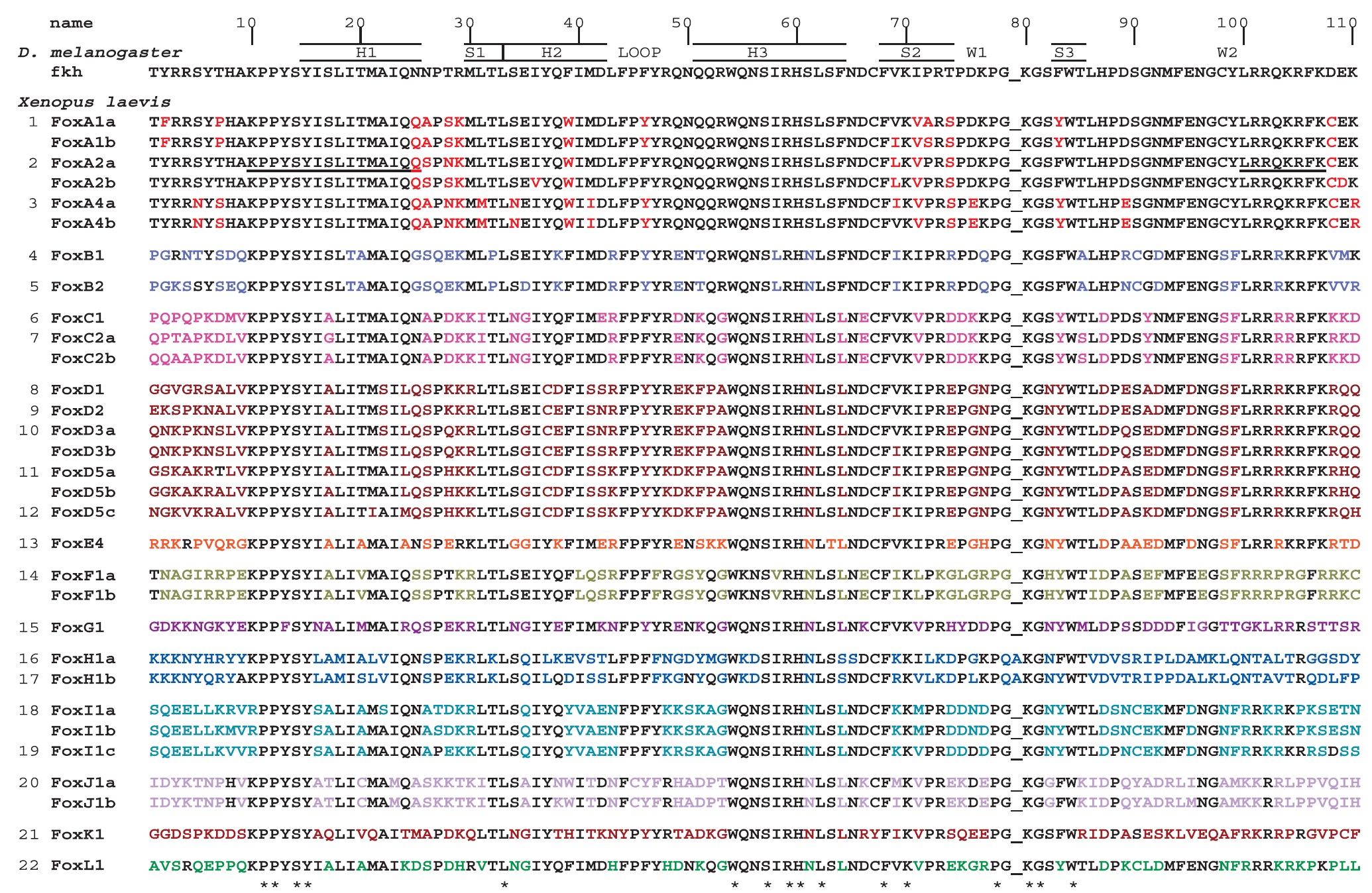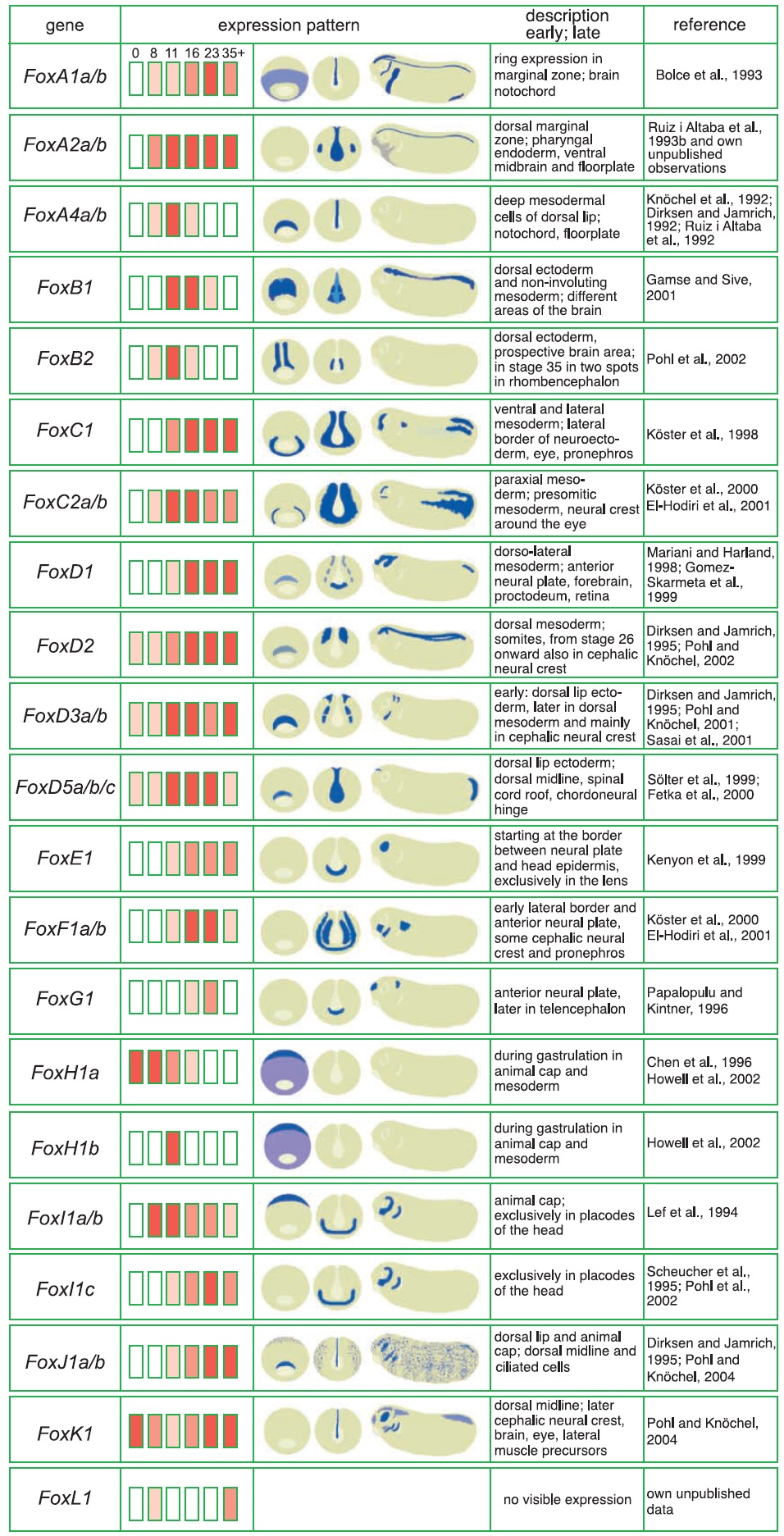 Genes referenced: foxa1 foxa2 foxa4 foxb1 foxb2 foxc1 foxc2 foxd1 foxd2 foxd3 foxd4l1 foxe1 foxe3 foxg1 foxh1 foxh1.2 foxi1 foxi3 foxj1 foxj1.2 foxk2 foxl1