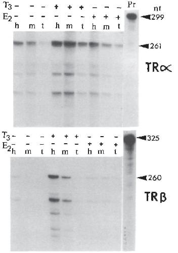 Fig. 6. Preferential autoinduction of TRb mRNA by T3 in