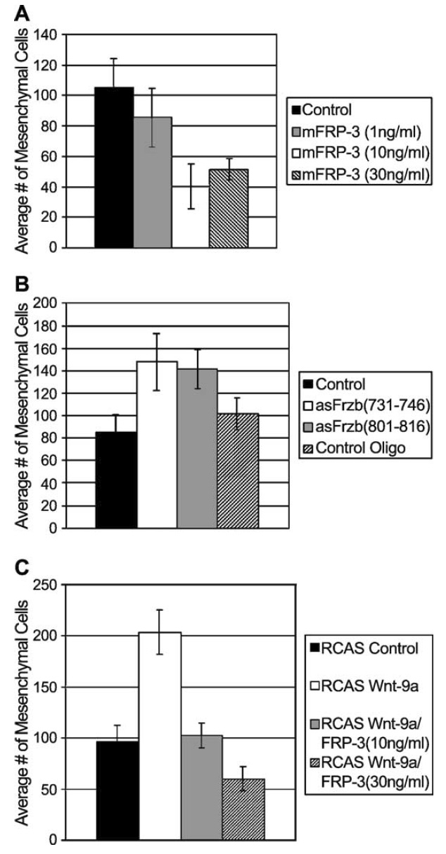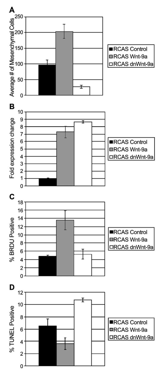 decreases mesenchymal cell number in RCAS Wnt-9a-infected cultures (C).