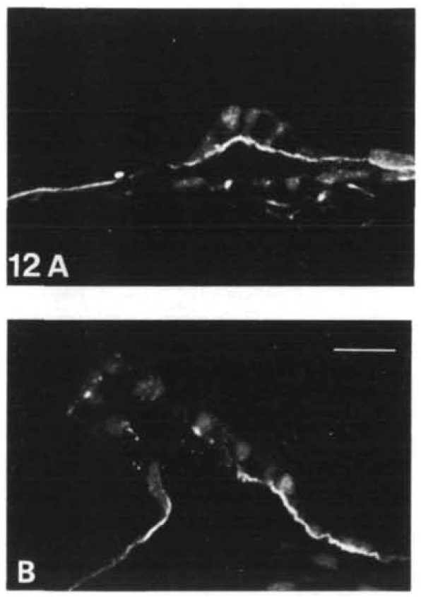 Fig. 10. (A) The chondroitin-sulphate distribution in the inner ear at stage 46.5 as revealed by immunofluorescence with