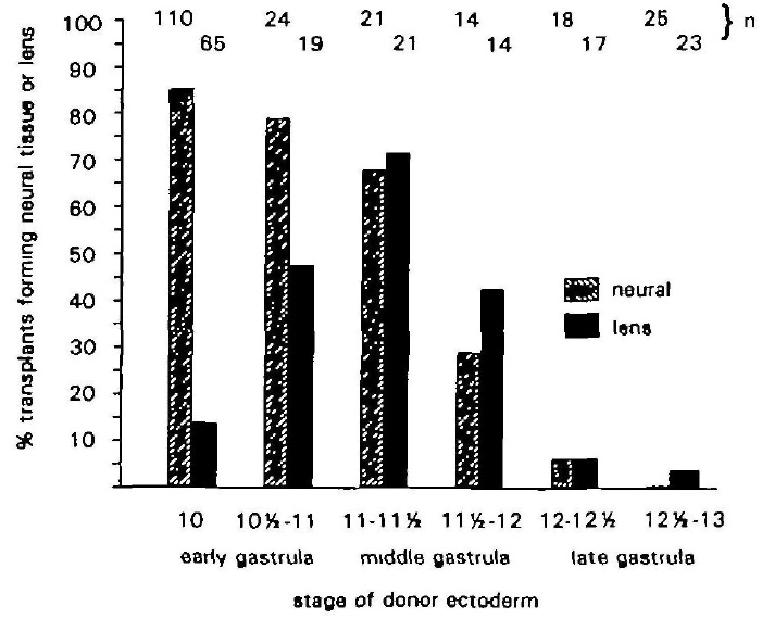 that formed lens or neural tissue at each of the stages