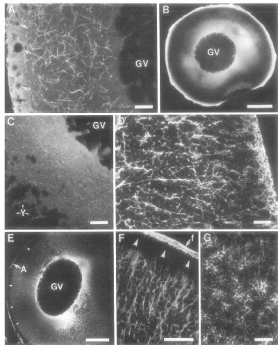 min recovery at room temperature (60X ohj; bar is 12.5 pm). (F, G) Extensive reassembly of microtubules in the animal (F) and vegetal (G)