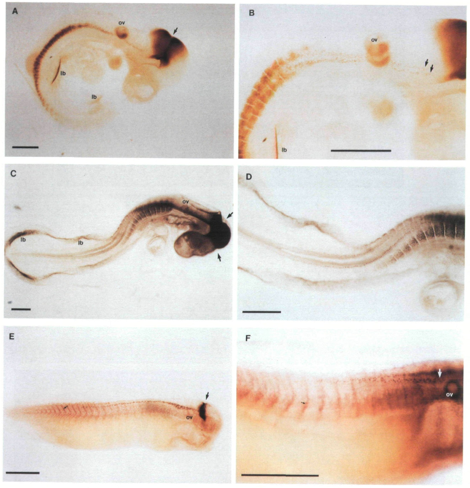 right, (ov) otic vesicle; (lb) limb bud. Scale bars represent 0.5 mm.