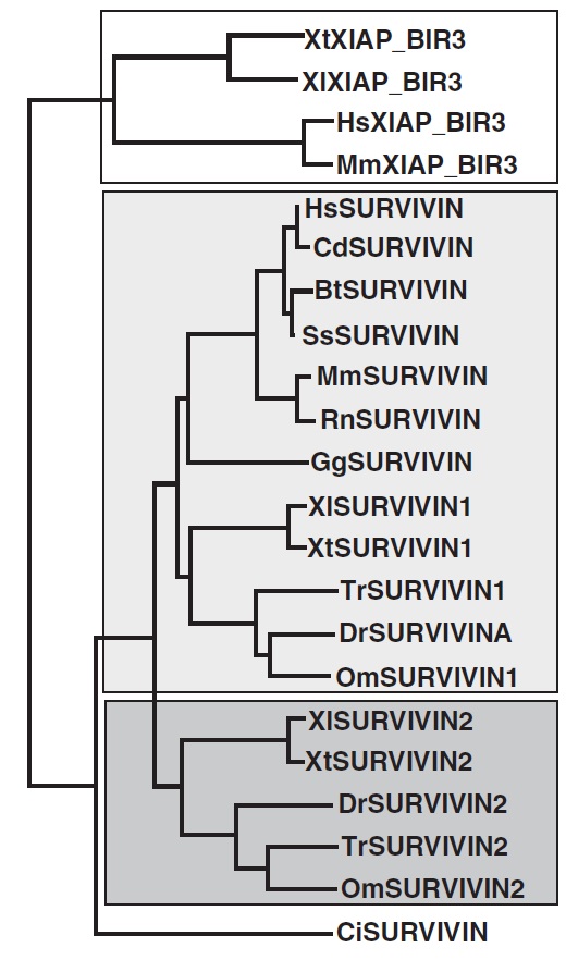 Fig. 2 Evolutionary relationships of vertebrates Survivin 1, Survivin