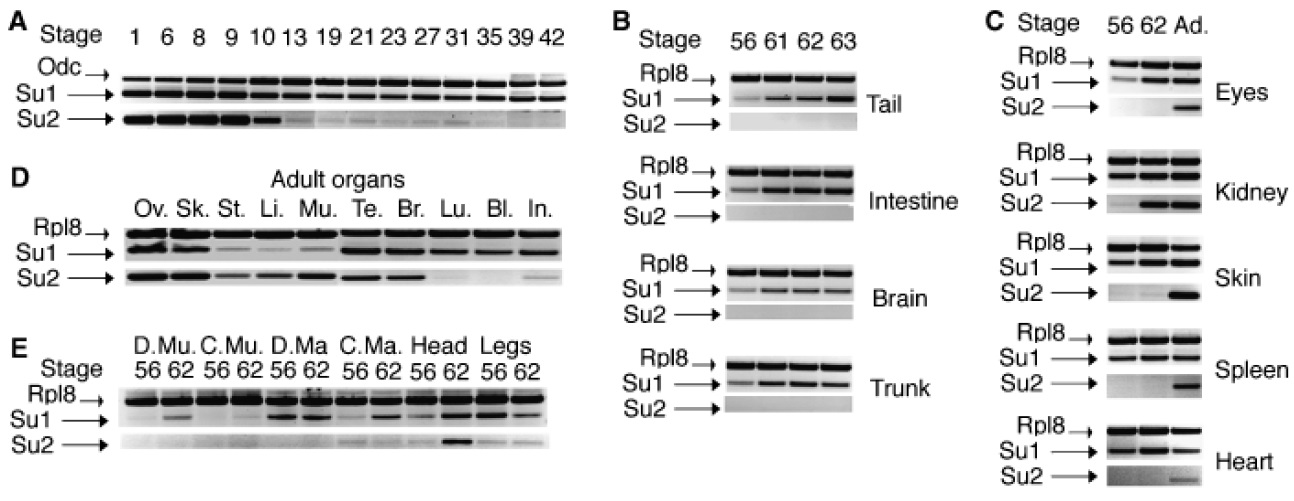 Su1 and Su2 mRNA. (A) Stages 1â35 embryos (Niewkoop and