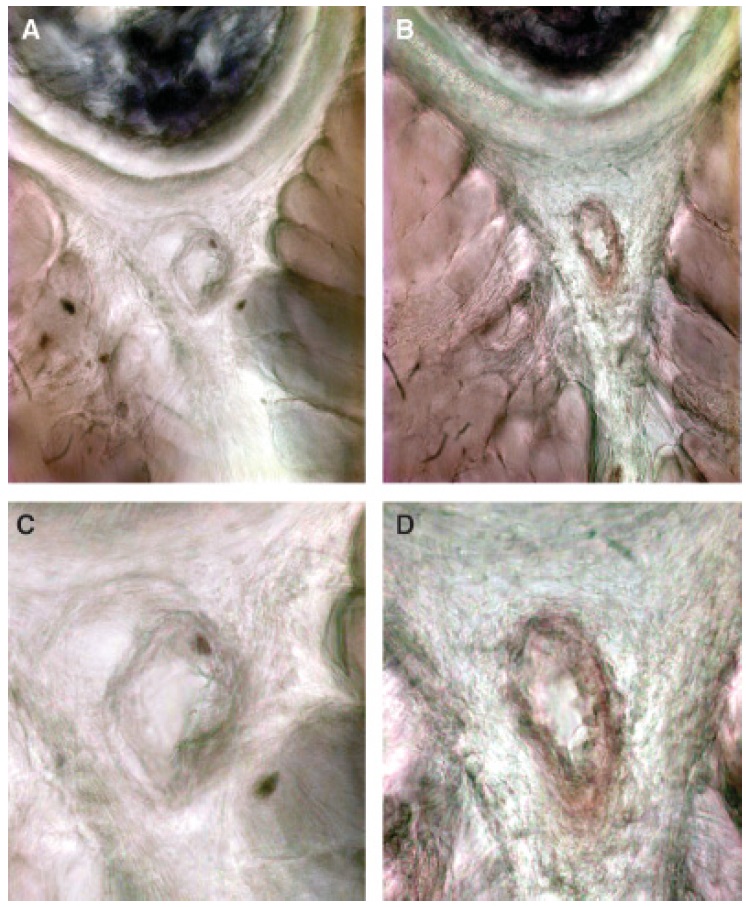 endothelial cells in blood vessel walls. (A, B) Pictures of a crosssection