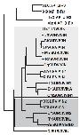 as an outgroup. The different families are shaded. Hs, Homo sapiens;