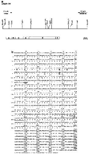 xRAR-39 in pBluescript SK. The open box represents the predicted translation reading frame. The subdomain structure according to