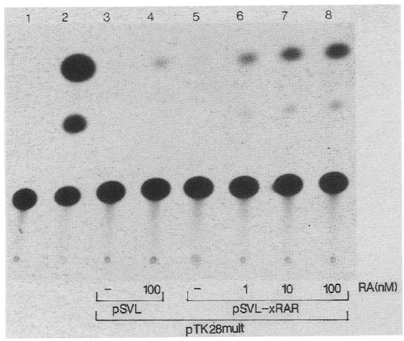 Figure 3. RA induces pSVL-xRAR-39-dependent transcription