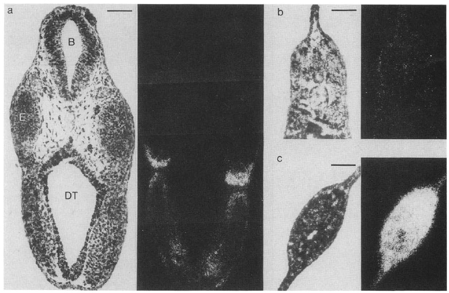 culture cells and of adult tissues [c], and total RNA of parts of dissected embryos {d, e). Embryos in a, d, and e were staged according to
