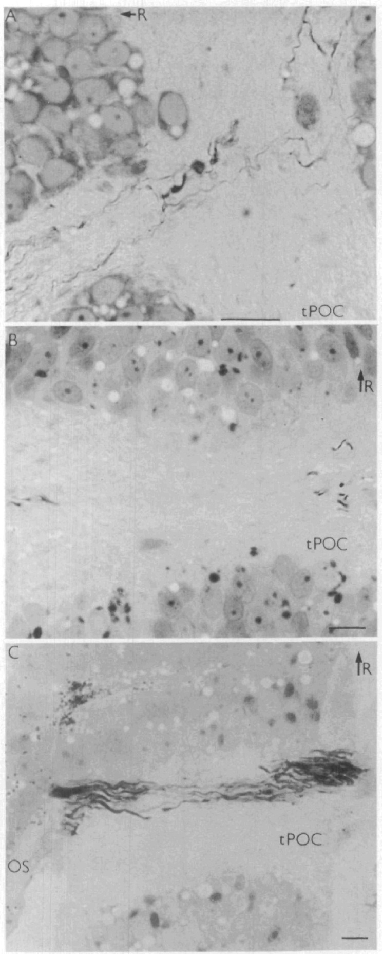direction. The stained axons and cells of the tPOC that lie