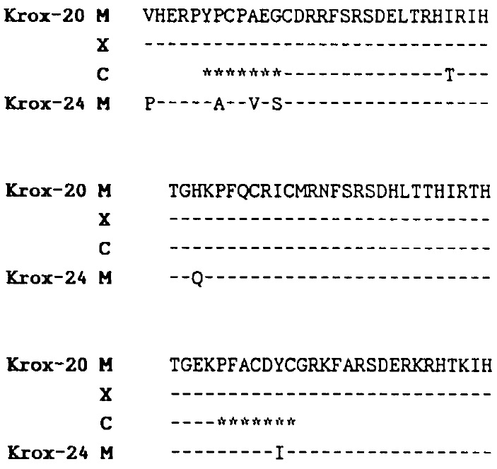 sequences from Chavrier et al. (1988) and mouse Krox-24