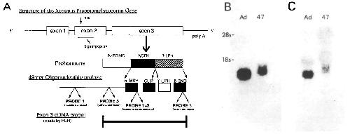 blots (B,C) showing probe specificity. (A) The POMC gene is comprised of three exons with exon 1 encoding the 5'