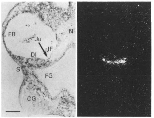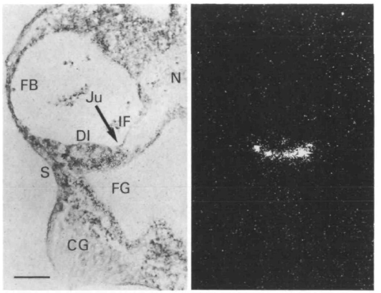 forebrain (FB) at the juncture (Ju, arrow) of the thickwalled
