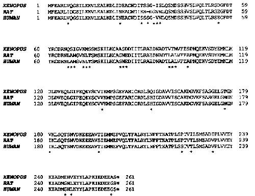 FIG. 2. Comparison between Xenopus, rat, and human deduced