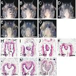 Regeneration of larval telencephalon. The anterior half of the telencephalon was removed from stage 53 tadpoles (A,H), and