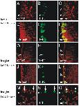 ependymal layer cells (red); anti-