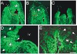 arrowheads in (D,E) indicates