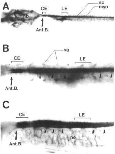 sg, sympathetic ganglia; no, notochord; CE, cervical