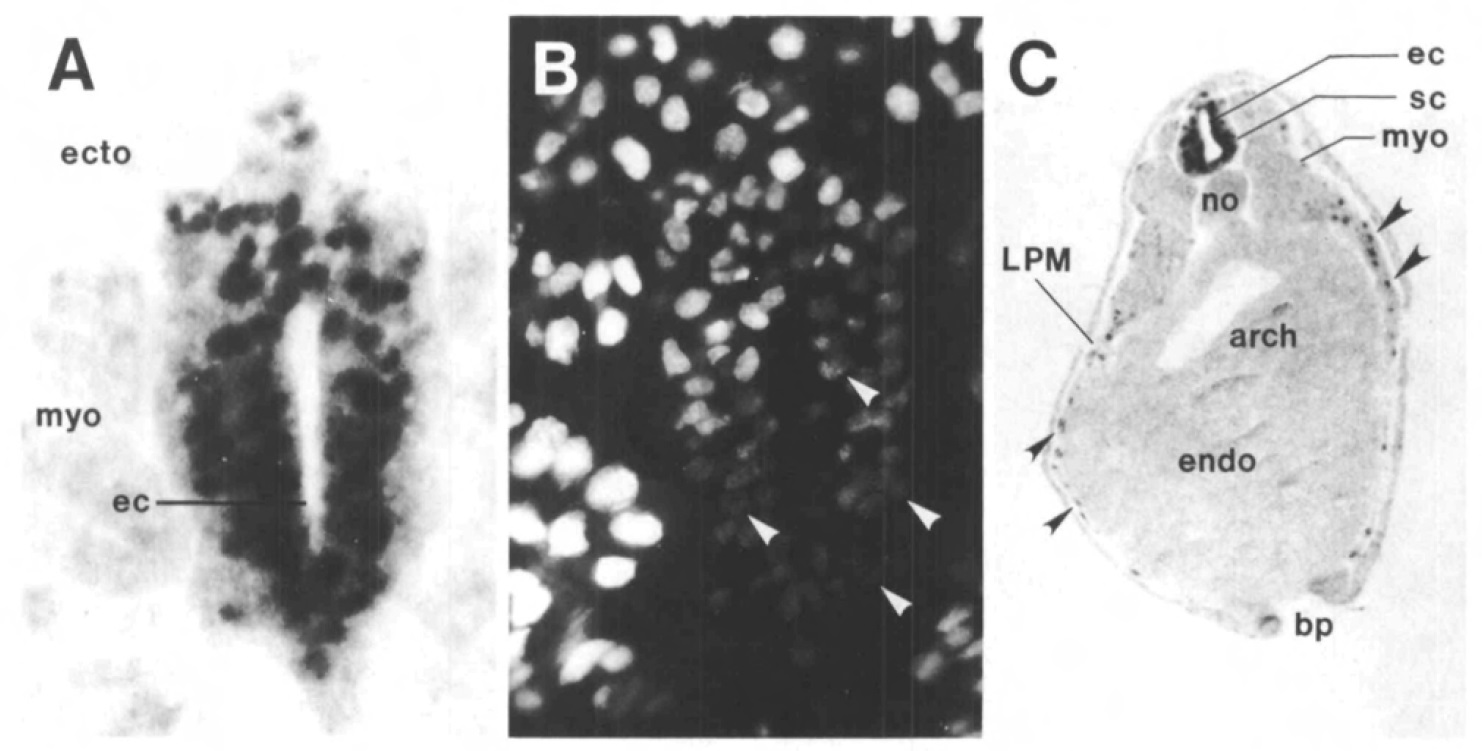 endo, endoderm; myo, myotome; ecto, ectoderm;