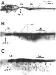 overstained to show more clearly the less intense staining in the lateral plate mesoderm nuclei. Abbreviations: