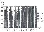 Fig. 6. Variations in the percentage of cells In GO. G 1, S. and G2 phases dUring 14 days of rat satellite cell cultures obtained from Image analysis