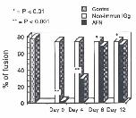 Fig. 13. Chart showing the cell fusion rate at day 16 in Xenopus satellite cell cultures to which antlfibronectin IgG (AFN) or non-immune fgG were added at different times.