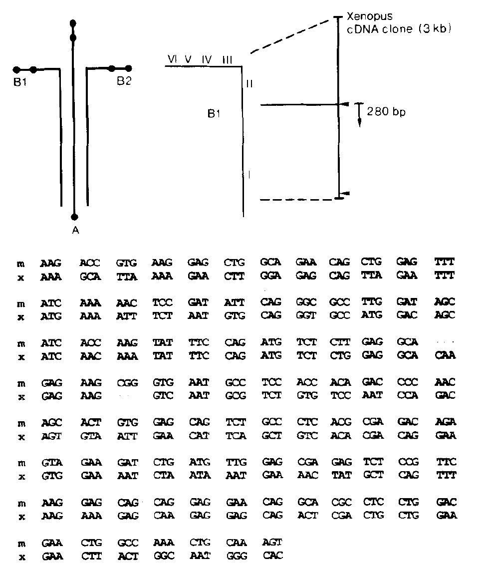 shows the cloned 3-kb Xenopus cDNA fragment, its position
