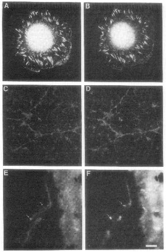 Panels E and F show a piece of whole-mounted tadpoletailmuscle double-labeled with rabbit anti-talin polyclonal antibodies and mouse