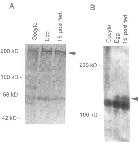 embryos 15 min after fertilization were resolved on 6% SDS-polyacrylamide