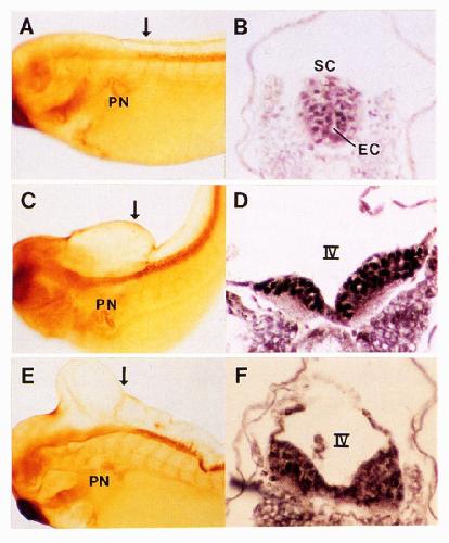 Figure 2. The Alterations in the Spinal Cord Extend the Fourth Ventricle into Regions Normally Occupied by Spinal Cord