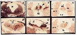 6 antibody, with positive nuclei appearing as black dots within the CNS. Comparison of the two rows of photographs shows that the affected cervical