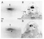 (A, A) Tadpoles were immunostained in whole mount with XlHbox 6 antibody and viewed dorsally. Specific nuclear staining is observed in the CNS,