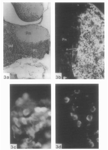 lobe; the neural part (pn) remains unstained. Immunofluorescence is confined to the cytoplasm of the