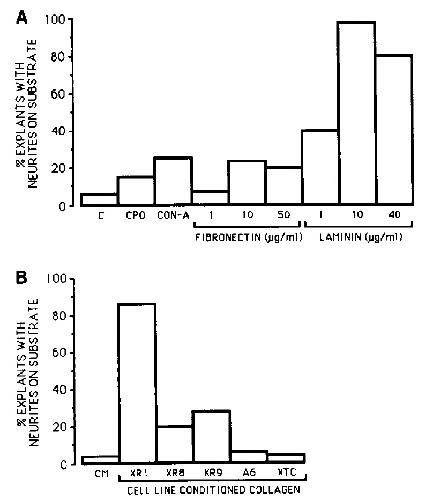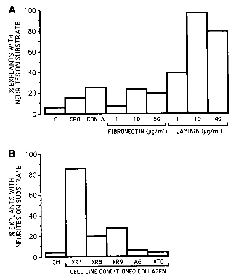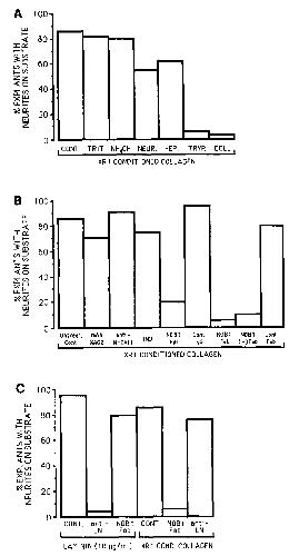 FIG. 6. (A) Neurite extension onto various noncellular substrates.